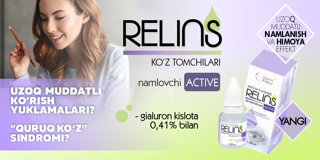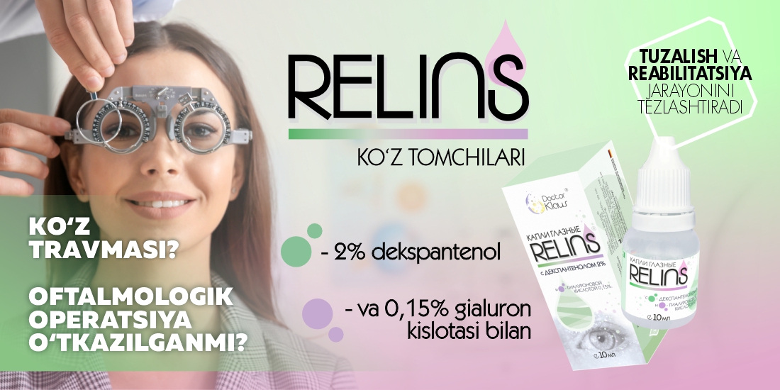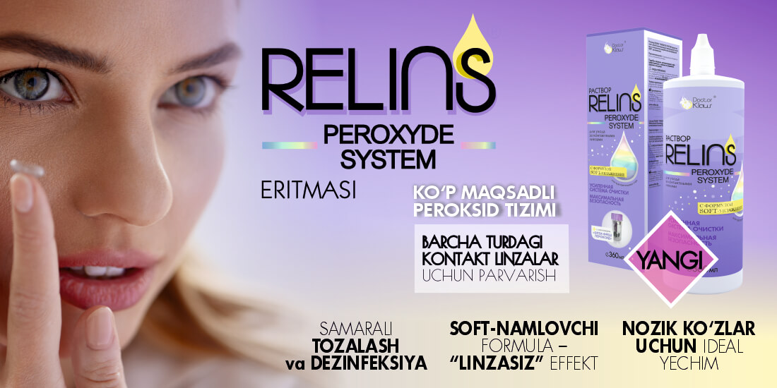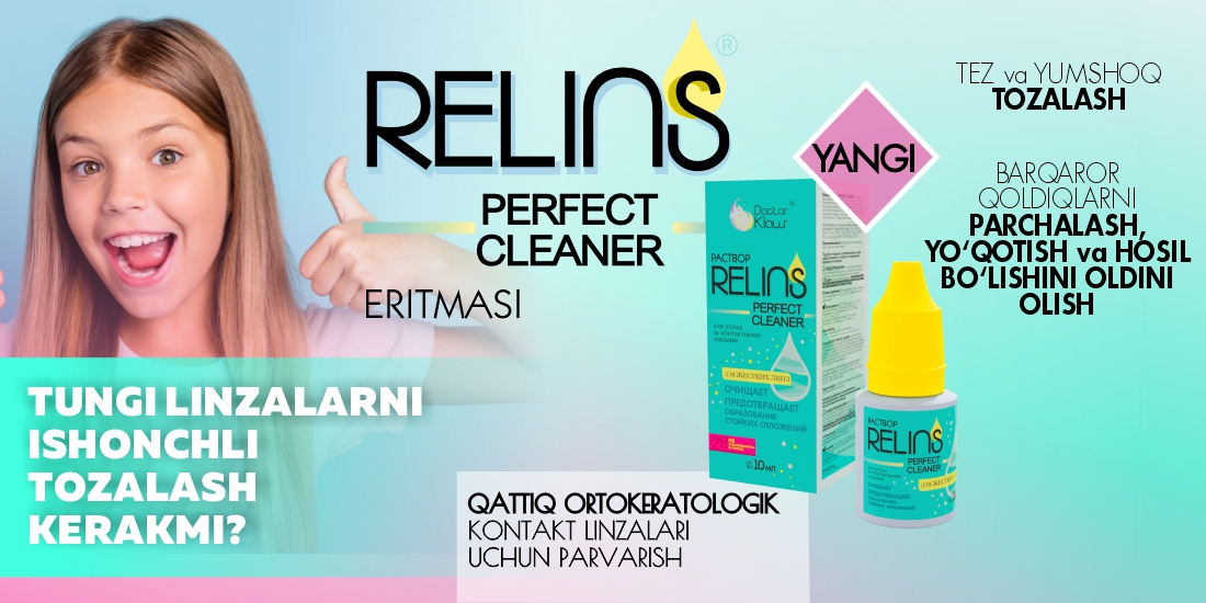 Kontakt linzalardan foydalanuvchilar uchun: RELINS linza uchun eritmasi — linzalarni tozalash va kun davomida ko‘z qulayligini ta’minlash kafolatidir. Qurish yoki achishish alomatlari sezilganda linzani yechmasdan dori tomizish imkoniyati — bebaho afzallikdir.