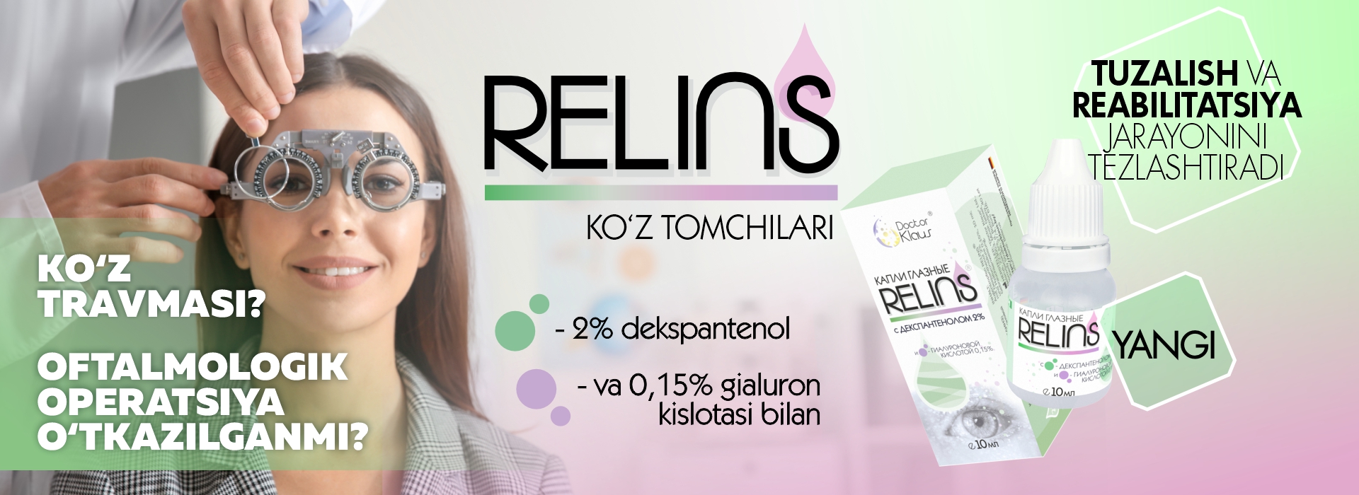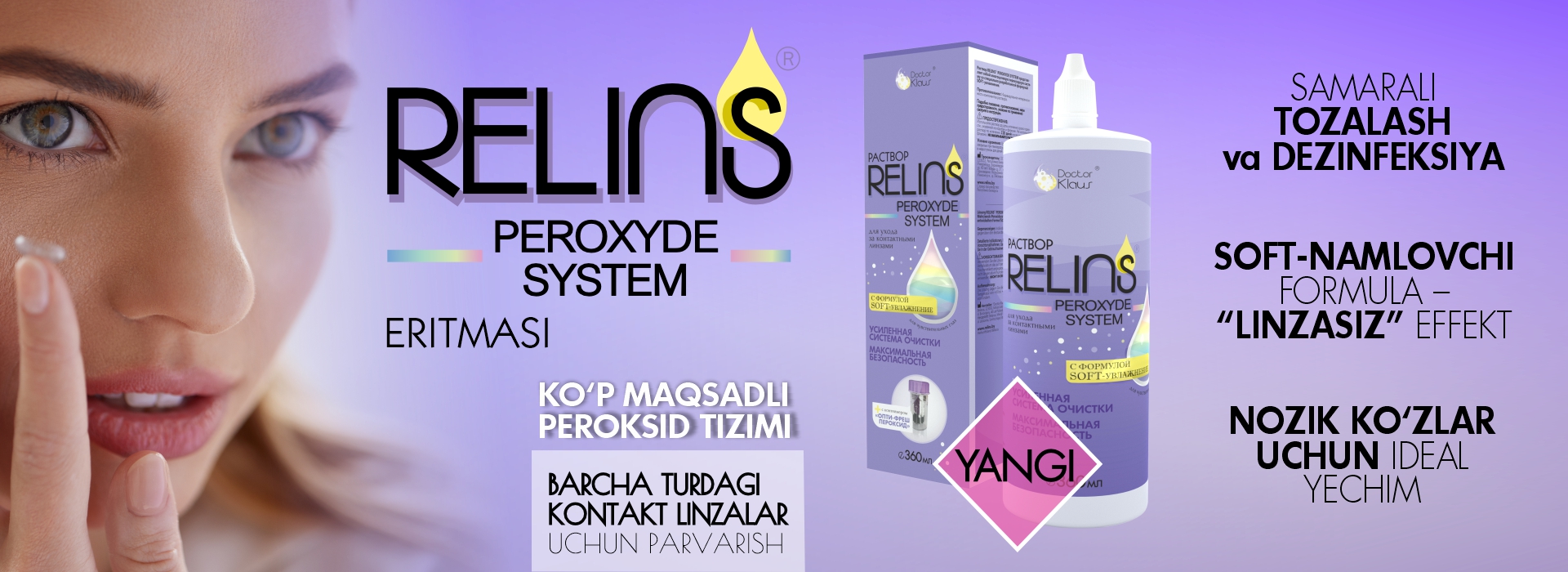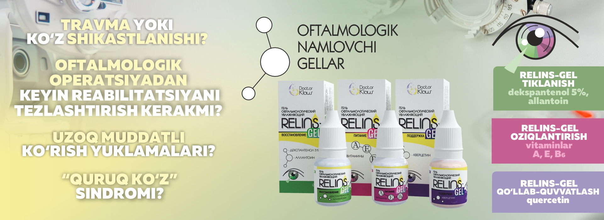 Doctor Klaus kompaniyasi kontakt linzalar uchun tarkibida E vitamini bo‘lgan ilk eritmani, shuningdek, ko‘z salomatligi uchun yuqori samarali RELINS ko‘z tomchilari va namlovchi oftalmologik gellar qatorini taqdim etadi. Ushbu muammolarni kompleks hal etishga mo‘ljallangan mahsulotlar endilikda O‘zbekiston dorixonalarida va optika do‘konlarida sotuvda mavjud.
