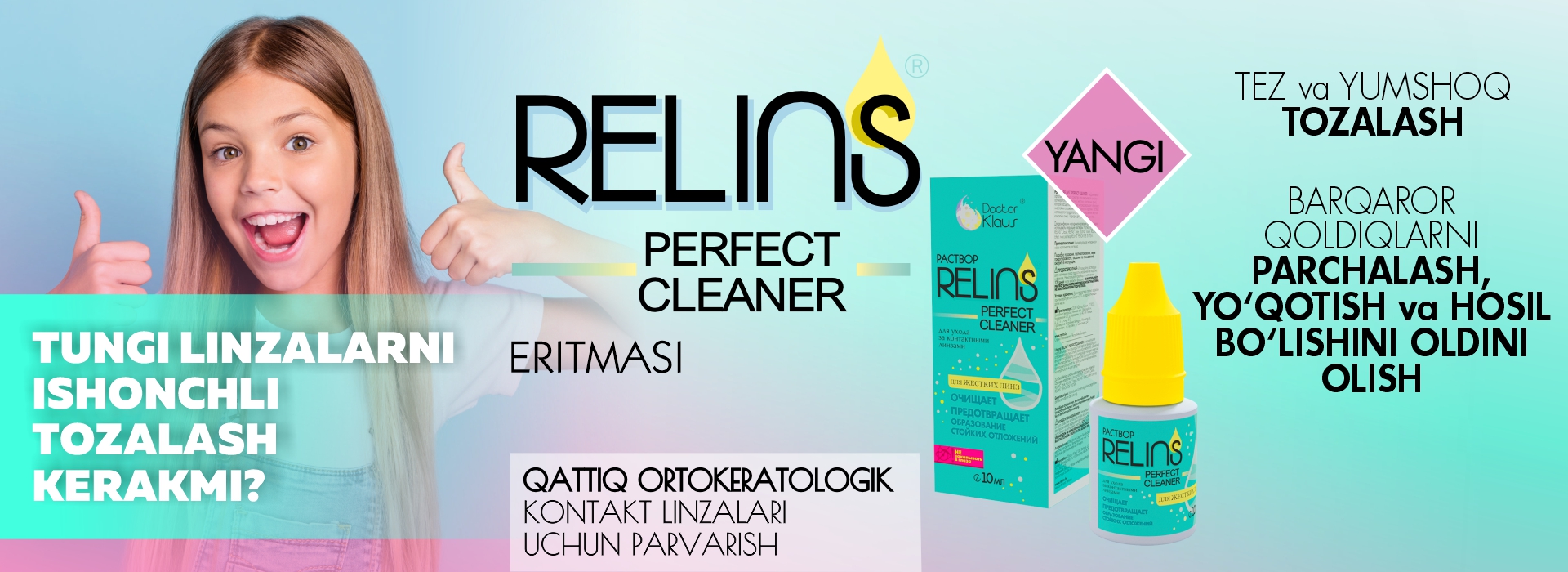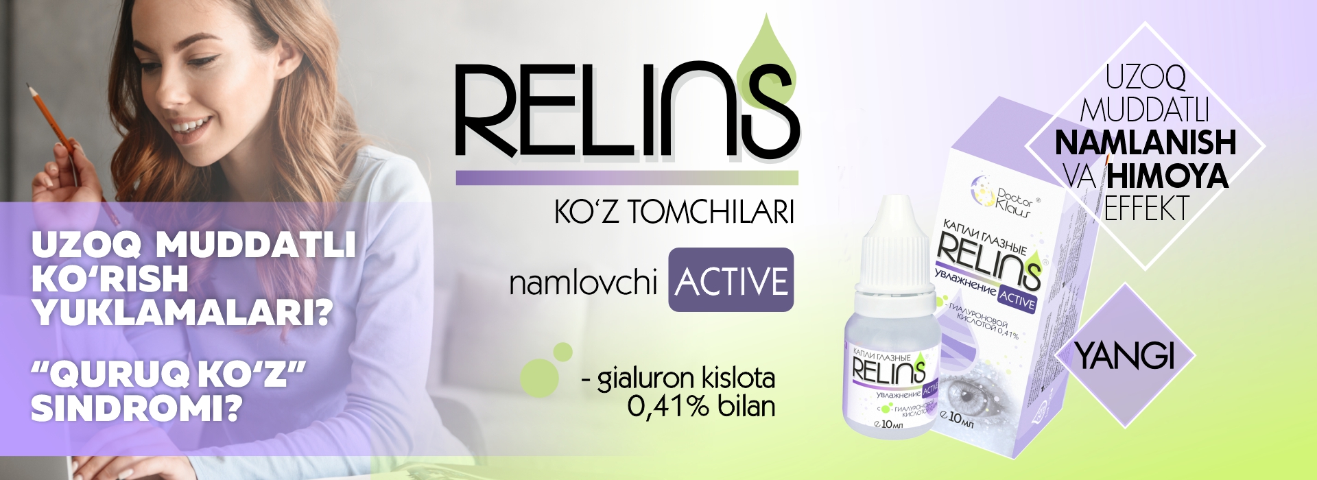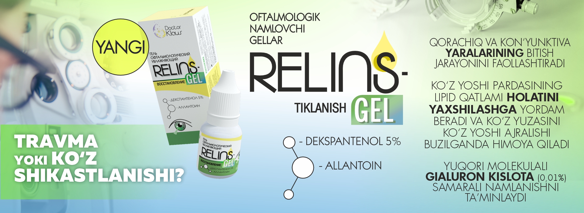 Doctor Klaus kompaniyasi kontakt linzalar uchun tarkibida E vitamini bo‘lgan ilk eritmani, shuningdek, ko‘z salomatligi uchun yuqori samarali RELINS ko‘z tomchilari va namlovchi oftalmologik gellar qatorini taqdim etadi. Ushbu muammolarni kompleks hal etishga mo‘ljallangan mahsulotlar endilikda O‘zbekiston dorixonalarida va optika do‘konlarida sotuvda mavjud.