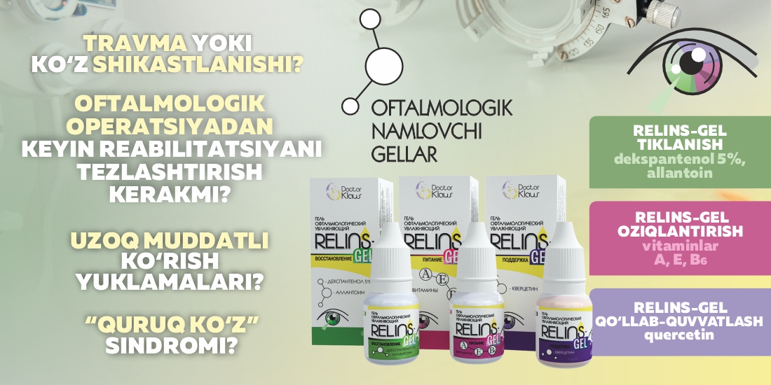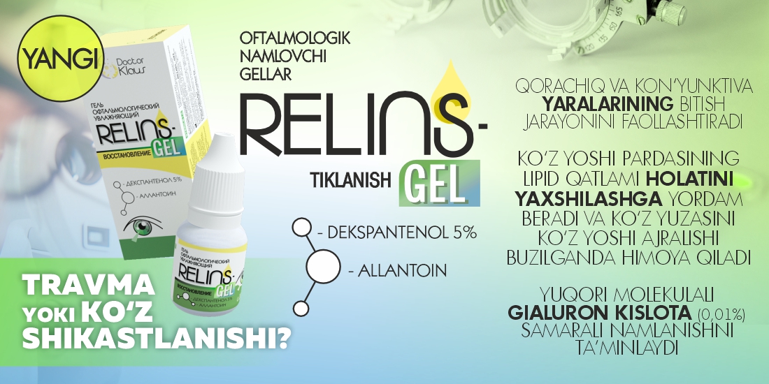RELINS linza uchun eritmalari, ko‘z tomchilari va oftalmologik namlovchi RELINS gellari — bu ko‘z salomatligi uchun qulaylik, gigiyena va himoyada innovatsion yondashuvdir. RELINS mahsulotlari bilan O‘zbekistonda o‘zingiz va bemorlaringiz uchun maksimal qulaylik va samarali parvarishni ta’minlang. Bugunoq ko‘proq ma’lumot oling va eng yaqin savdo nuqtasini toping!