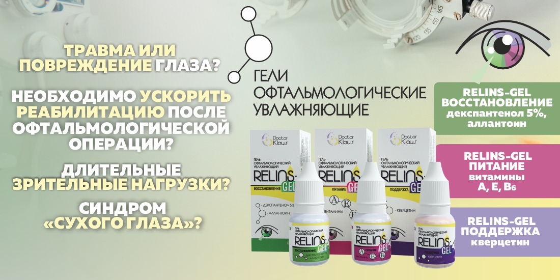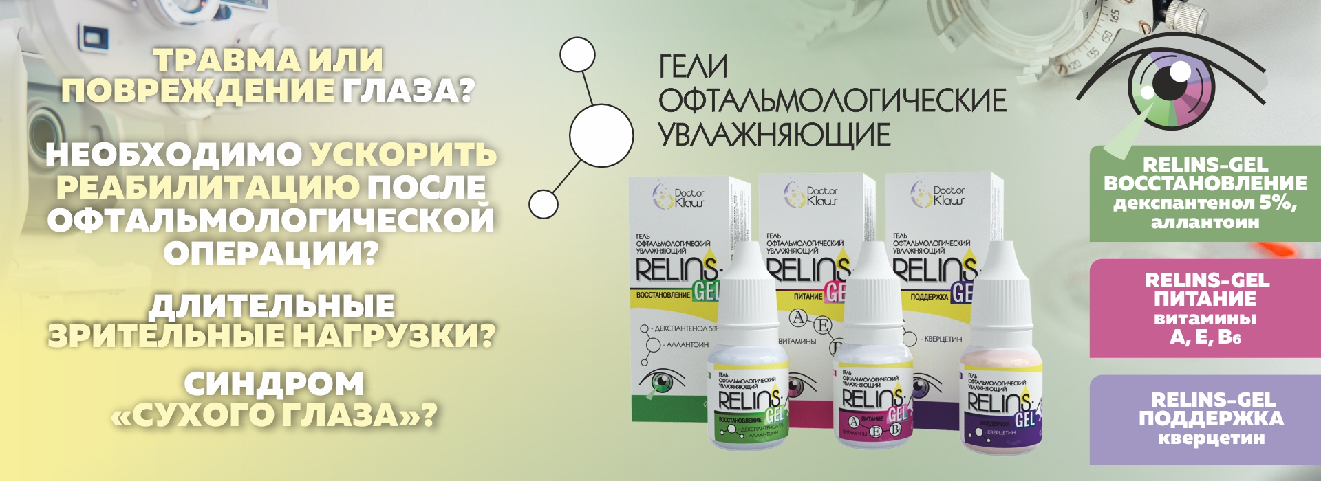 Глазные капли и офтальмологические гели увлажняющие RELINS дополняют линейку, обеспечивая: