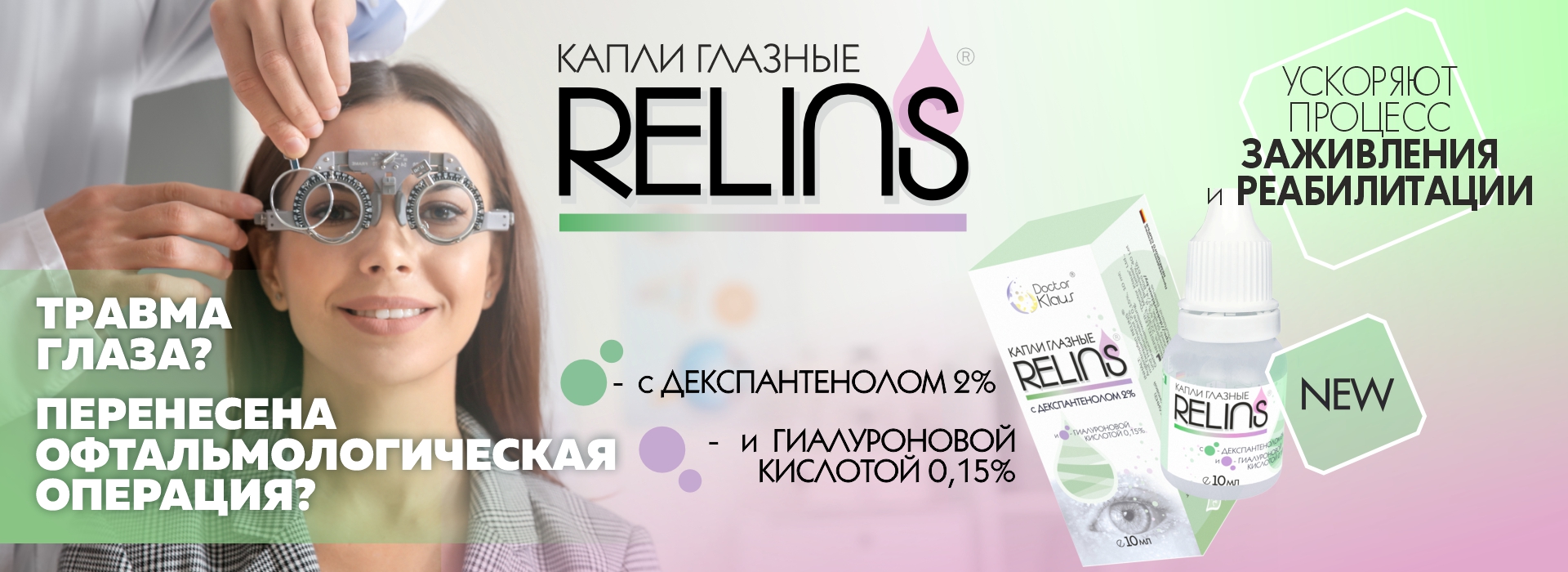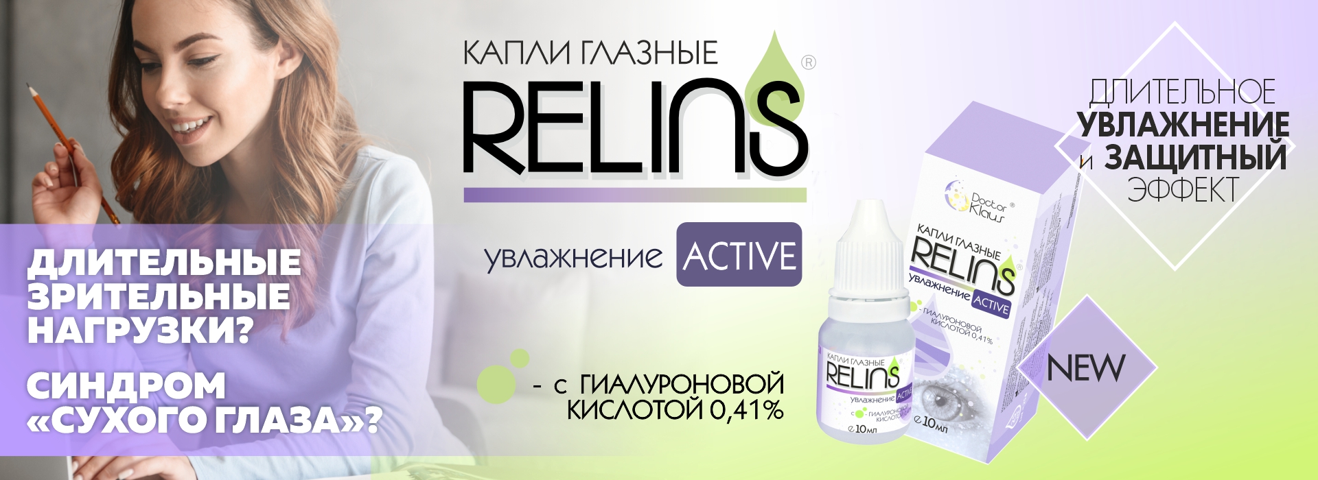 - Актуальные цены на растворы для линз RELINS и глазные капли уточняйте в точках продаж.