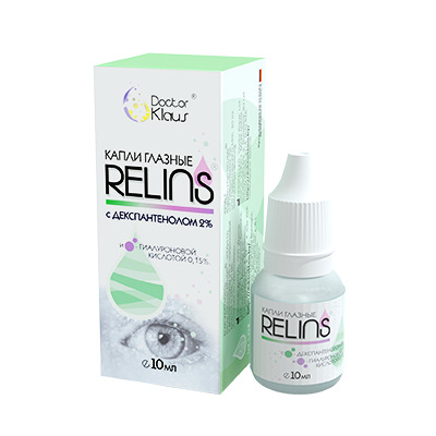 Капли RELINS с декспантенолом 2% и гиалуроновой кислотой 0,15% совместимы со всеми видами жестких и мягких контактных линз и способствуют их комфортному ношению, при этом для закапывания не требуется предварительно снимать линзы.