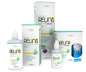 • Растворы для ухода за линзами RELINS с витамином Е: для всех типов контактных линз, включая уход за ортокератологическими линзами.